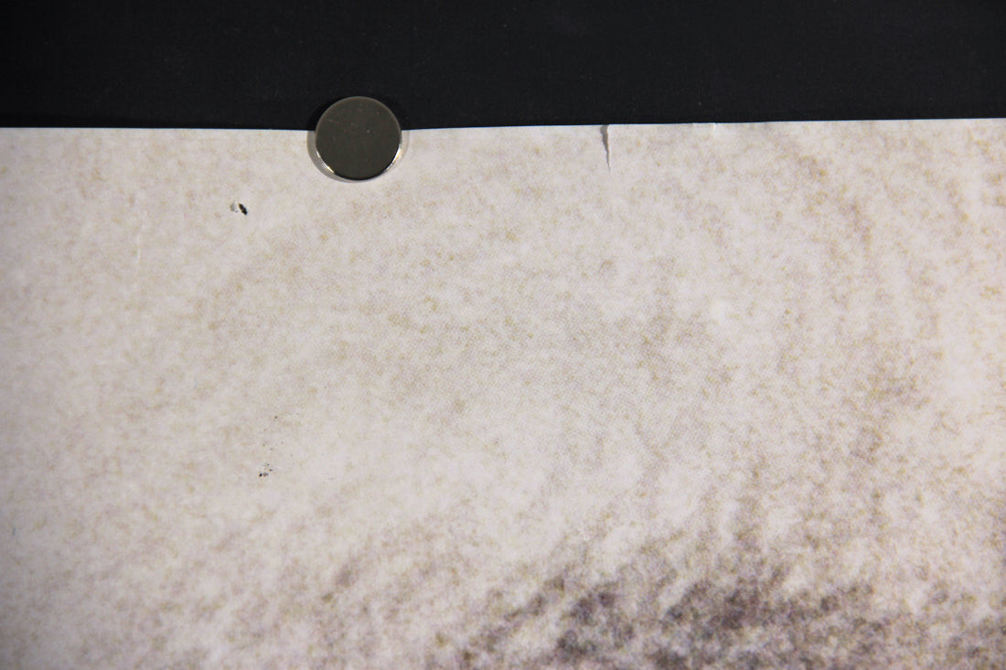 A poster that is heavily used, but would still be reasonably presentable if framed. Posters in this grade can exhibit significant tears, numerous pinholes, significant fold separation, tape on the front (as well as reinforcing tape on the verso), light fading, moderate to heavy soiling, slight trimming.